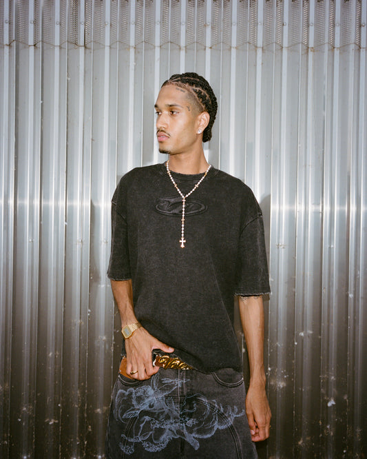 DISTRESSED LOGO T-SHIRT WASHED BLACK WASHED BLACK