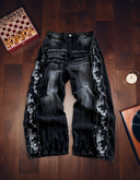 FLORAL ZIP JEANS WASHED BLACK WASHED BLACK